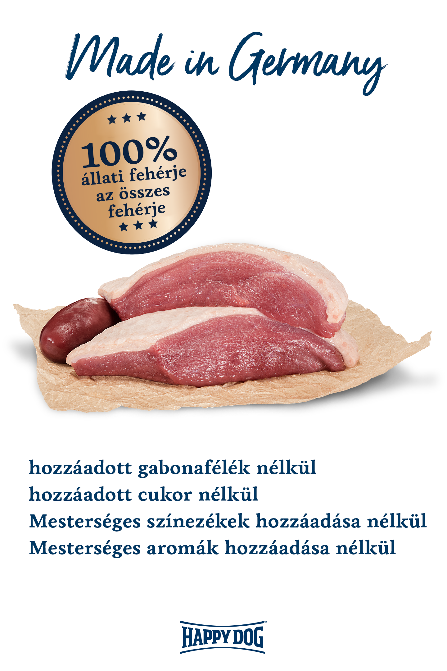 Töltsd meg kutyád tálját Happy Dog Sensible Pure France eledellel, amely 100%-ban a legjobb húsból és belsőségekből készült, kizárólag kacsából készült tiszta húsos eledel. Nedvestápjainkkal fajoknak megfelelő módon etetheted négylábú barátodat. Természetesen nem tartalmal hozzáadott szóját, cukrot, mesterséges színezékeket és aromákat.