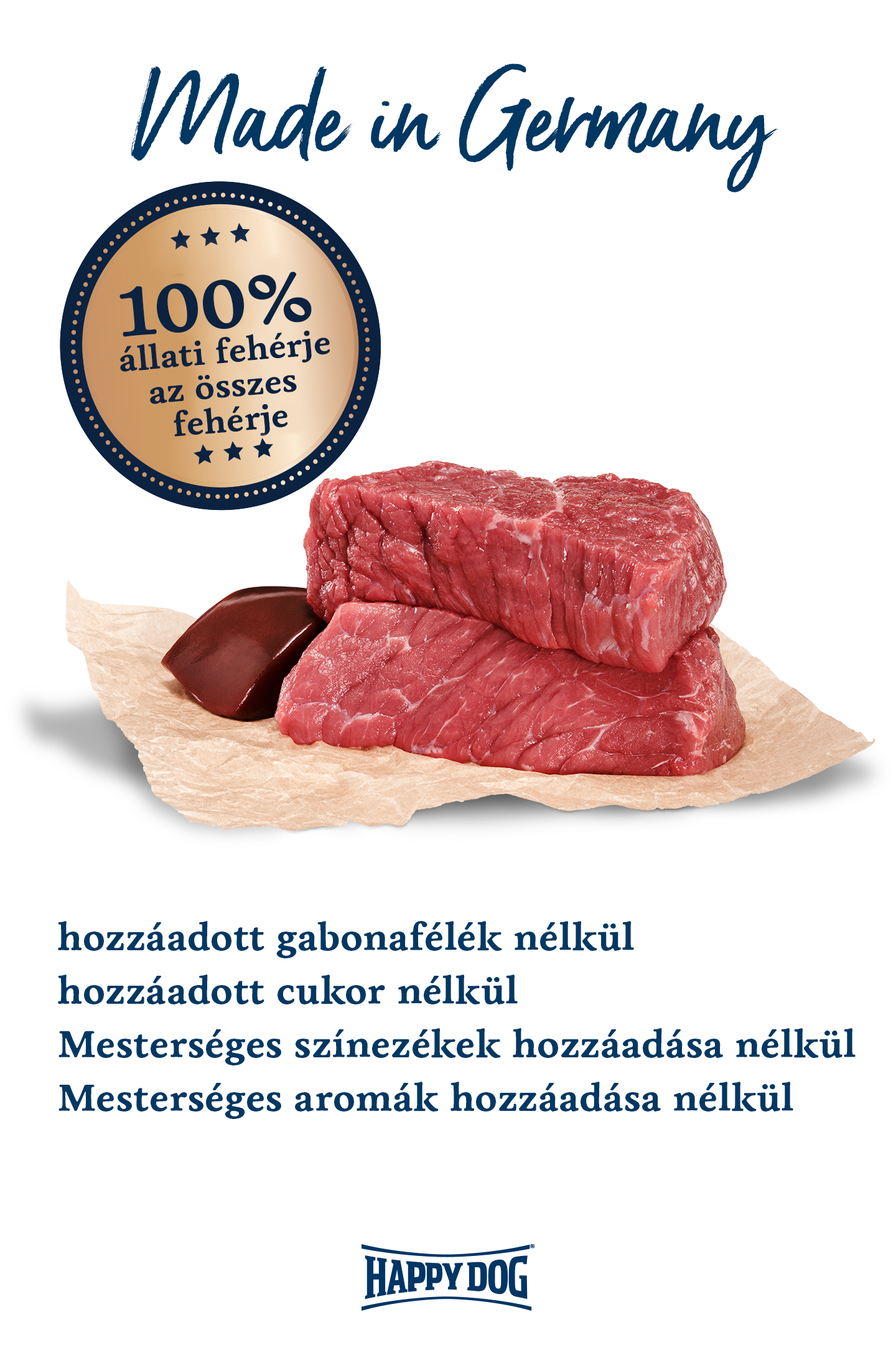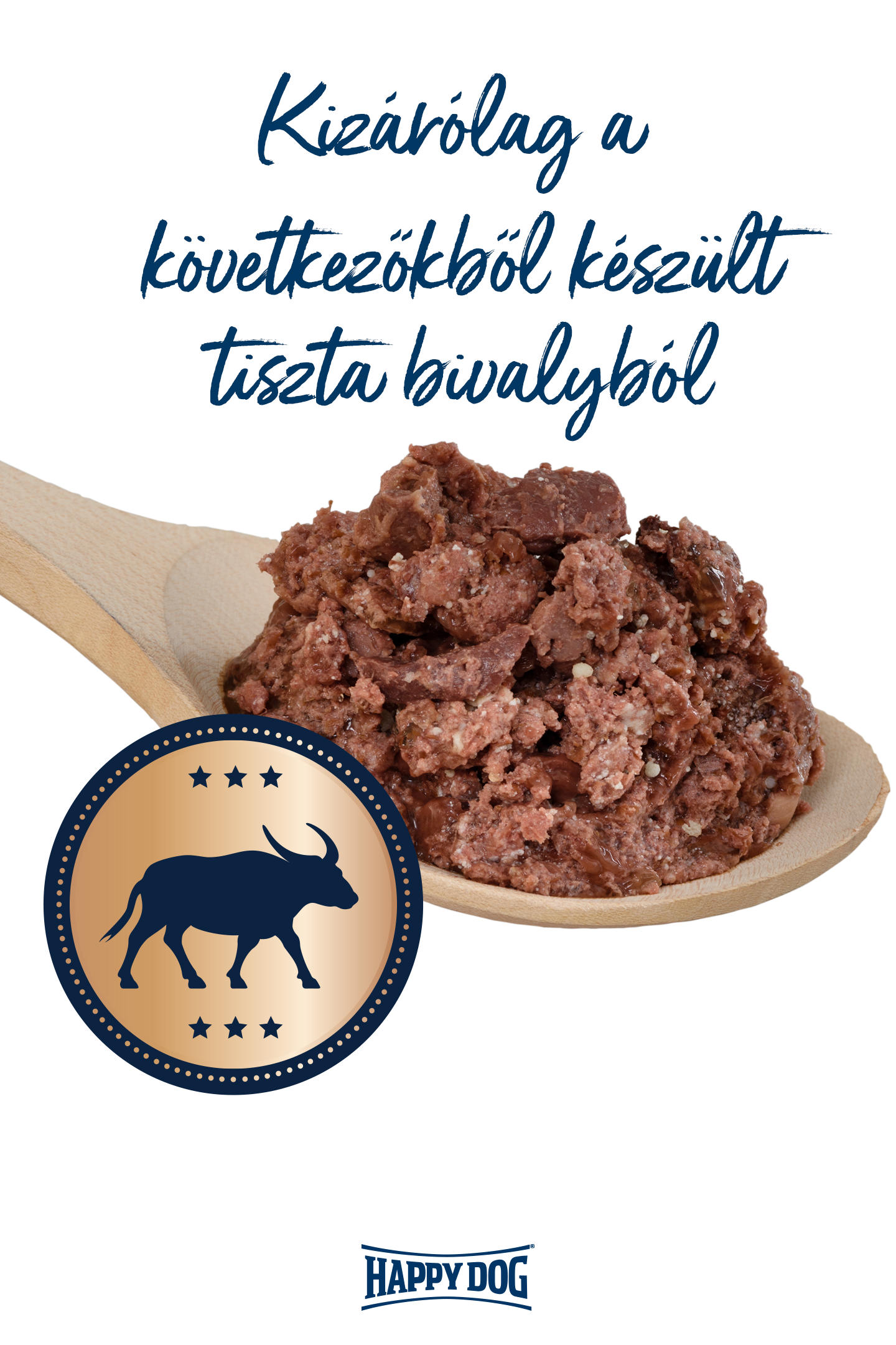 100%-ban bivalyból* származó állati fehérjéből készült kutyaeledel