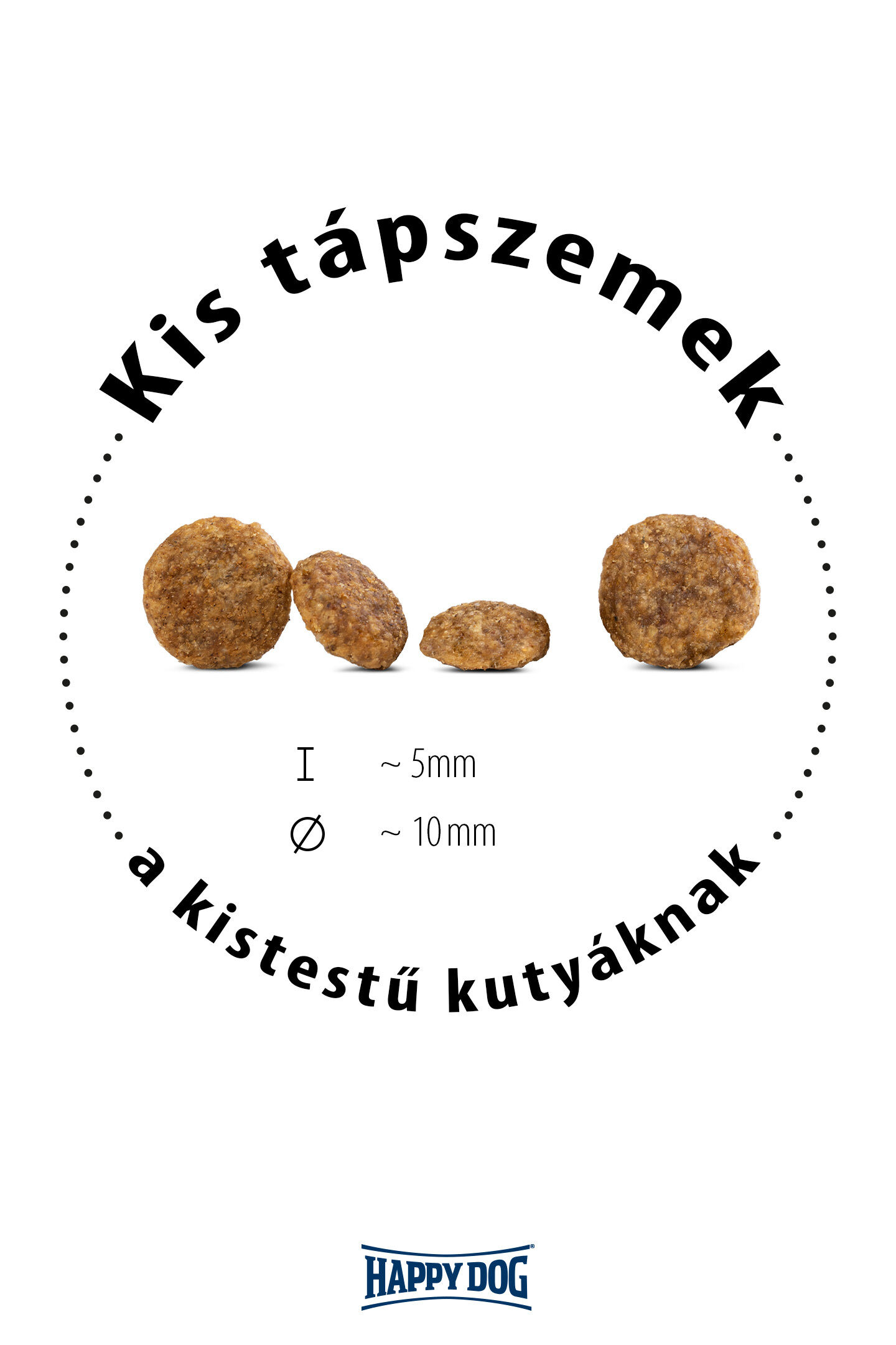 A kis tápszemek méretét a kistestű kutyafajták számára optimalizáltuk, 10 kg felnőtt súlyig. A Happy Dog Sensible Mini termékcsaládunk emellett mentes a mesterséges színezékektől, aromáktól és tartósítószerektől, valamint nem tartalmaz hozzáadott cukrot. Kizárólag természetes, géntechnológia nélkül termesztett vagy előállított alapanyagokat használunk. Így a kistestű kutyusodnak nem kell kompromisszumokat kötnie, a teljes ízvilág az övé lehet!
